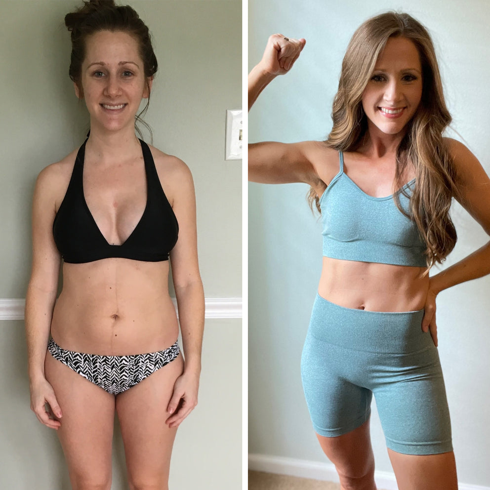 "One word....confidence. You can look at my before photo and see how little confidence I had and how uncomfortable I felt having my photo taken in a bikini. I was several months postpartum after my second little boy, stuck in the middle of a pandemic, working from home while caring for my boys and doing it nearly alone with a spouse who was "essential". I was lacking confidence in every area of my life, my mental health was bleak, and I was spiraling.....until I found Tone It Up. My sister and I committed to the challenge and I figured I had nothing to lose but I never imagined all that I would gain. I've not only reached my health and fitness goals, I've found a community of women that encourages me and pushes me to be better in every aspect of my life. I owe so much to my #TIUteam and these amazing programs for helping me grow into the strong, and dare I say, confident woman I am today. I feel more like "me" than ever before and I love the person I've become through this challenge! TIU girl for life!"