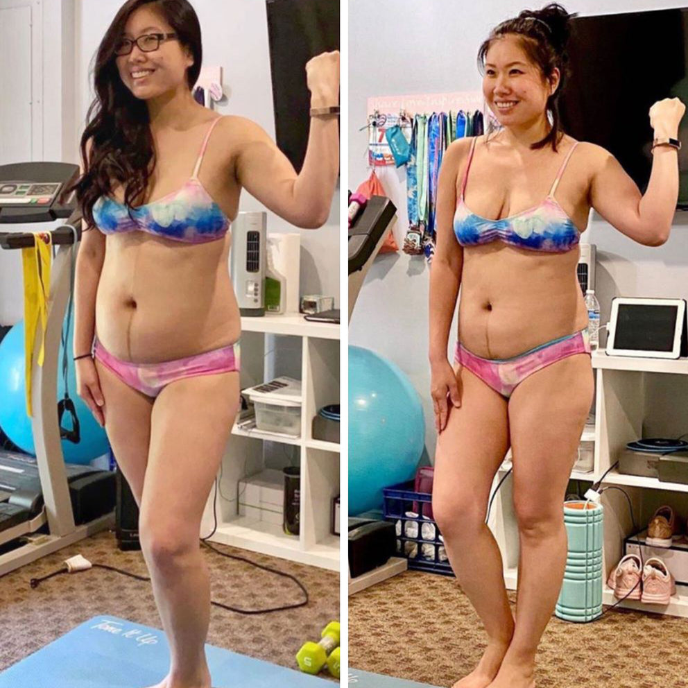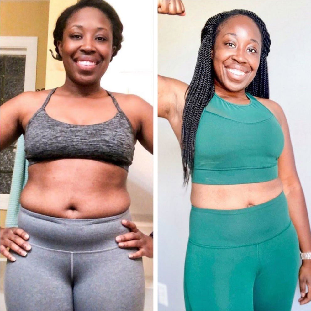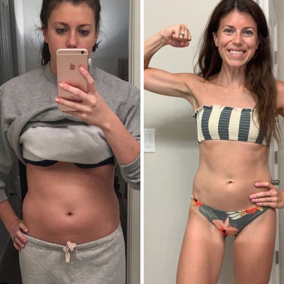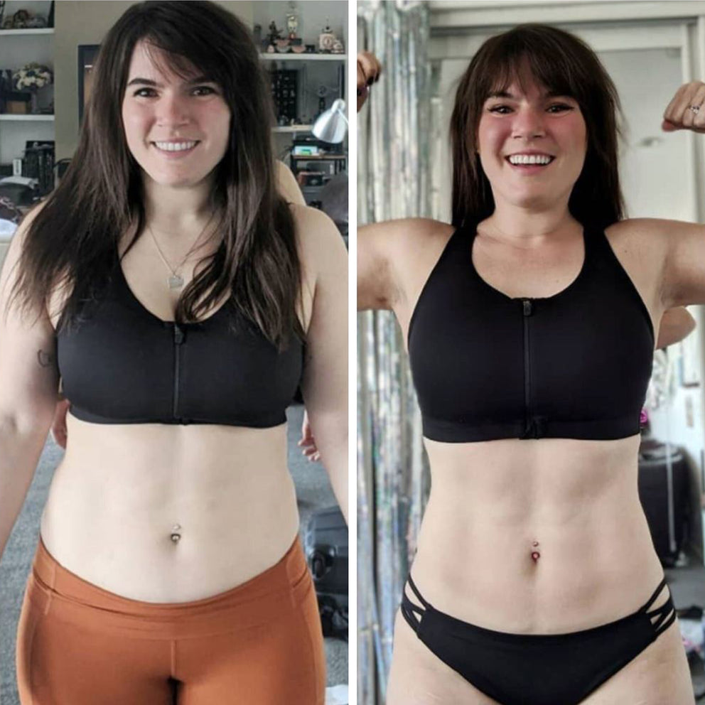 “The girl on the left was in the habit of pizza/takeout food several times a week and beer almost every night. Fast forward to the girl on the right: I am now confident, have muscle tone and strength I never had before, daily meditation has become a part of my routine, I love my body, I love working out, I am eating healthy. I have no more stomach problem, my skin is glowing, this list goes on!...Just know you’re not alone!”