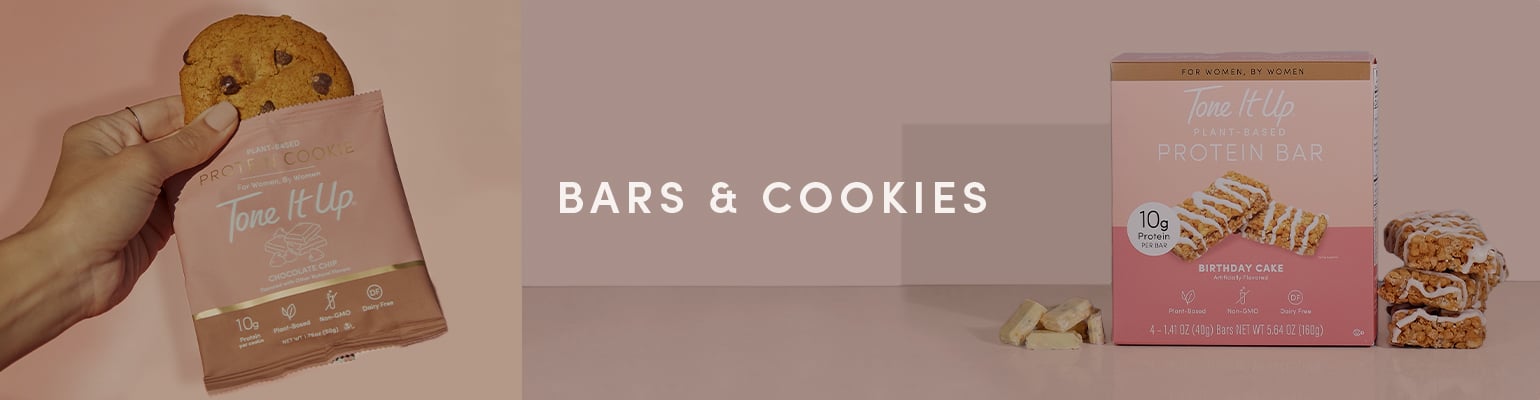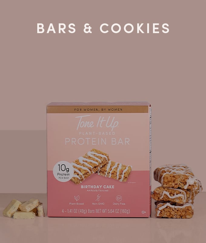 Your body needs protein to build strong, beautiful muscles, boost your metabolism, and keep you movin’! For more plant-based protein, pair your protein bars and cookies with Tone It Up Plant-Based Protein Powder. With a variety of delicious and versatile flavors, you can add your protein powder along with plant based milk into a shaker bottle when you’re in a hurry, add a scoop to your post-workout smoothie, and even sneak it into your favorite baked goods!